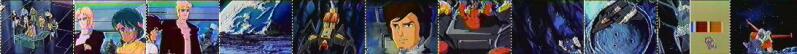 Back on the Moon, Black Zarak is trying to choke God Ginrai as they approach a cliff. The Cybertron falls, with the Destron transforming to his scorpion mode and landing on him to resume his stranglehold. Ginrai's vision starts to go blurry and black out, leading to a flashback of Godbomber's construction, Hawk's supervision, Godbomber's completion, and the human forms of the Cybertrons. With his vision clearing again, he kicks the scorpion off of him, and flies away to avoid Overlord's landing.